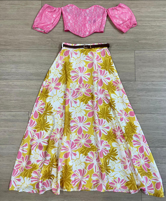 Satin Floral Print Maxi Skirt