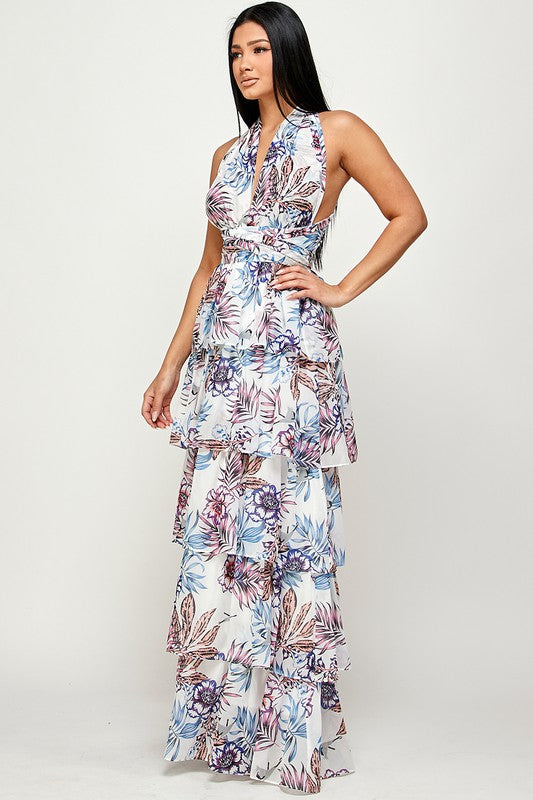 Halter Neck Chiffon Tiered Maxi Drees