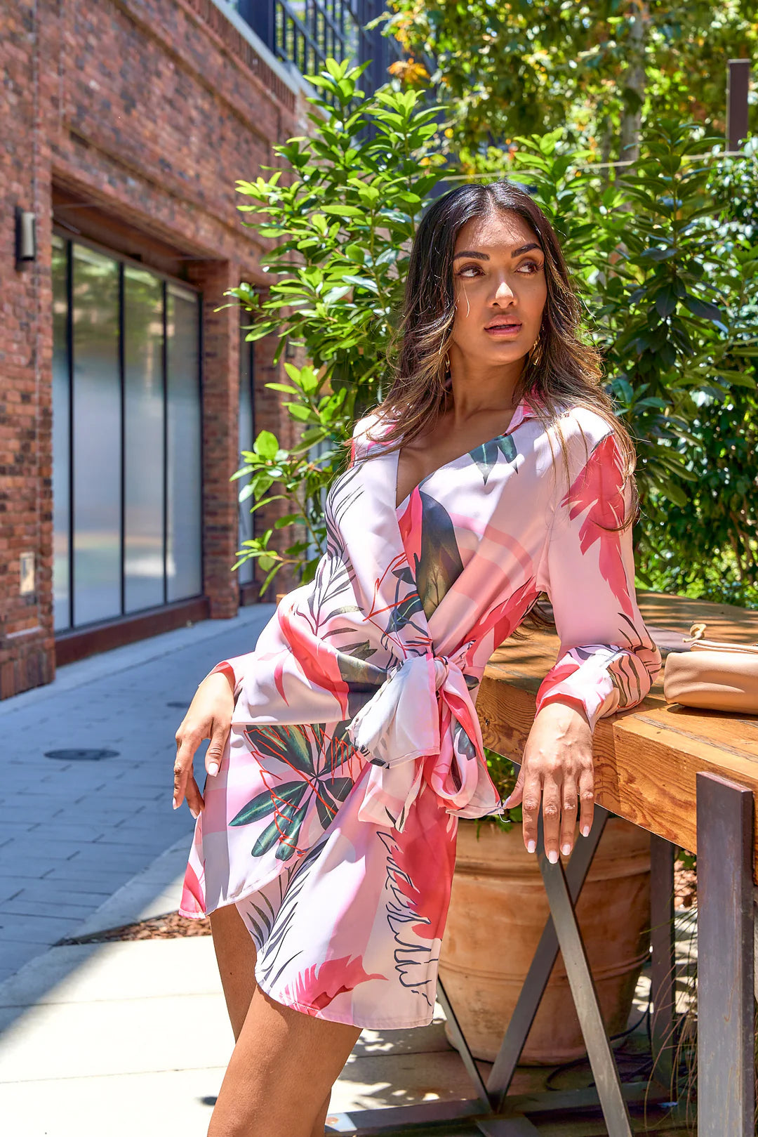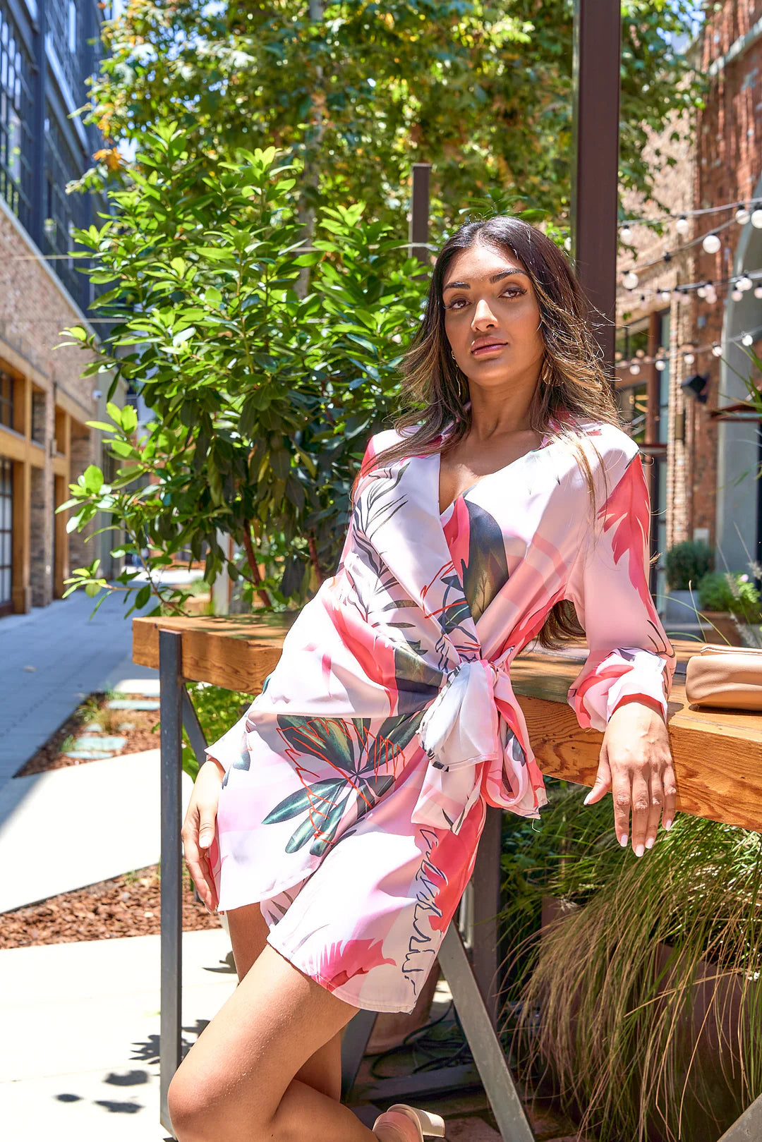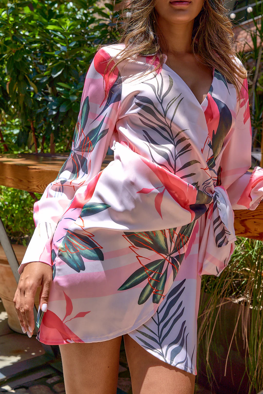 TROPICAL PRINTED WRAPAROUND DRESS